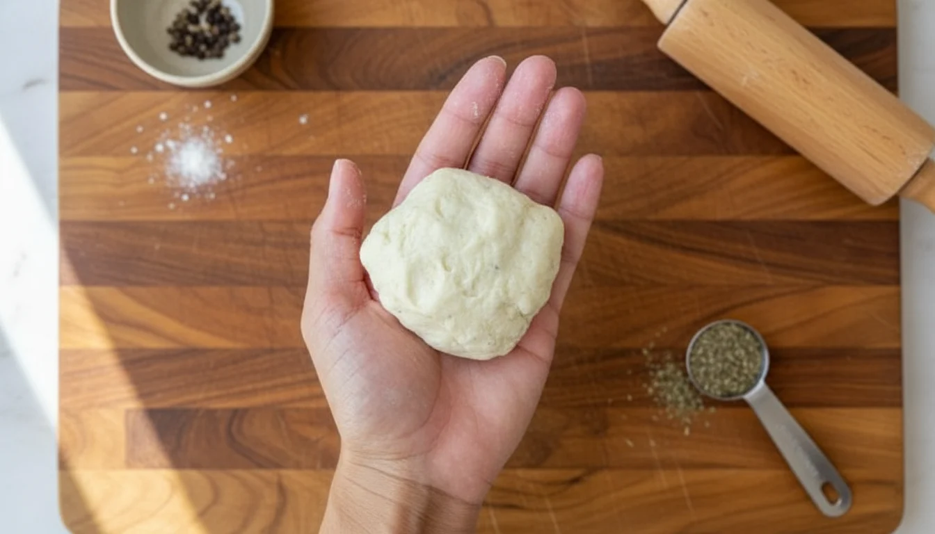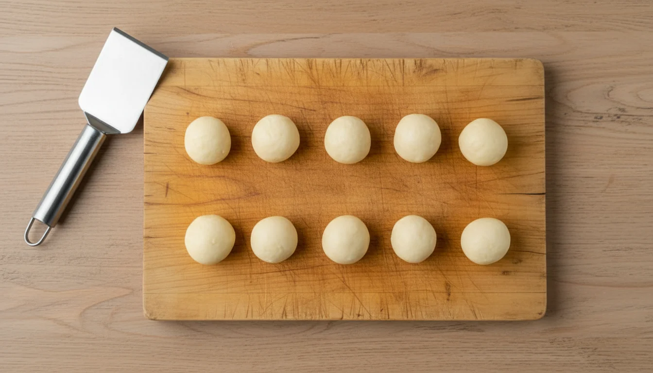 - Unte as mãos com um pouco de manteiga para facilitar. Modele pequenas porções da massa em bolinhas;