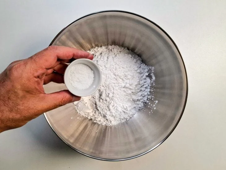 - Em uma tigela grande, coloque o polvilho doce junto ao sal.