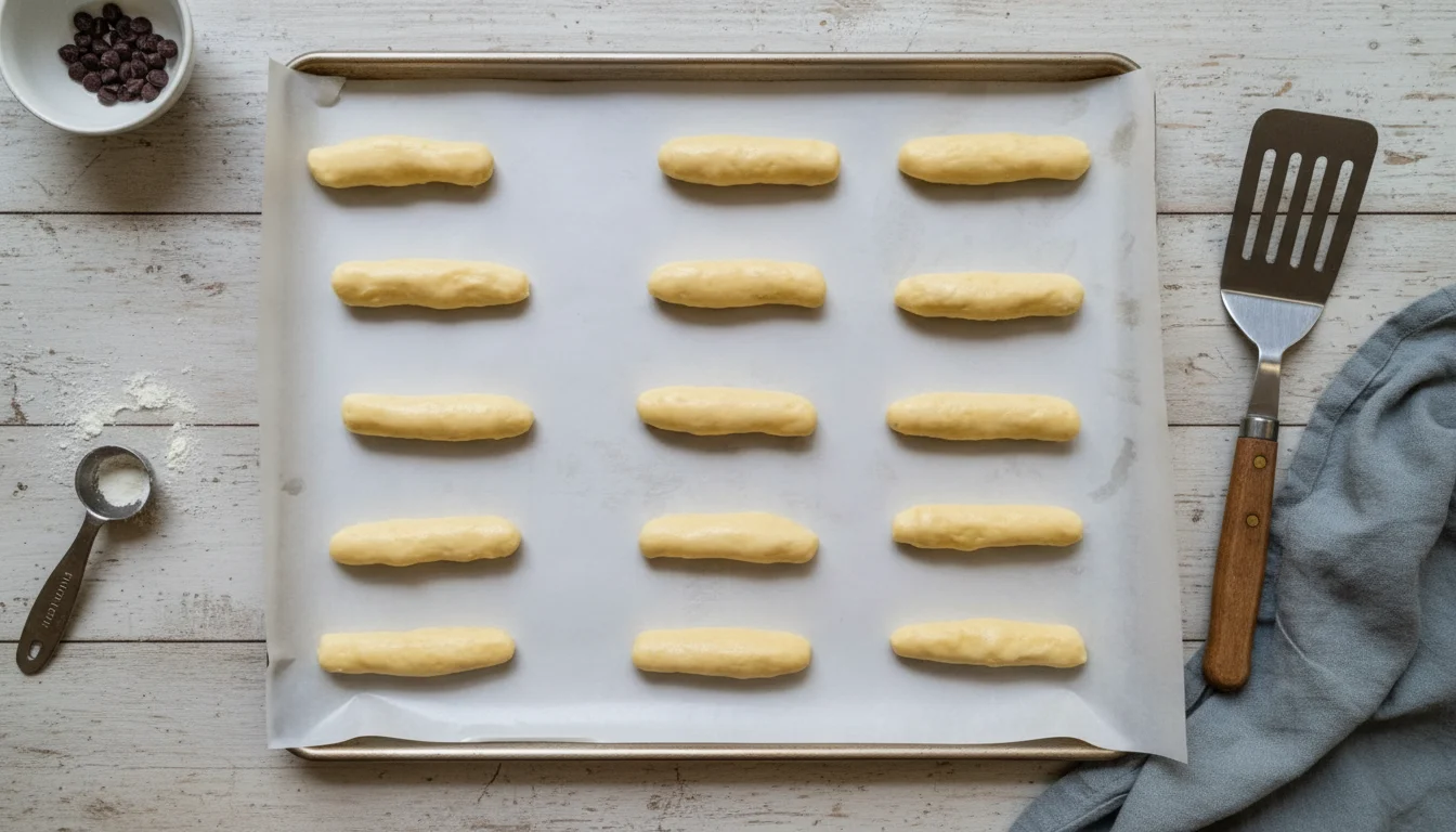 - Unte levemente uma assadeira e distribua os biscoitos, garantindo espaço entre eles.