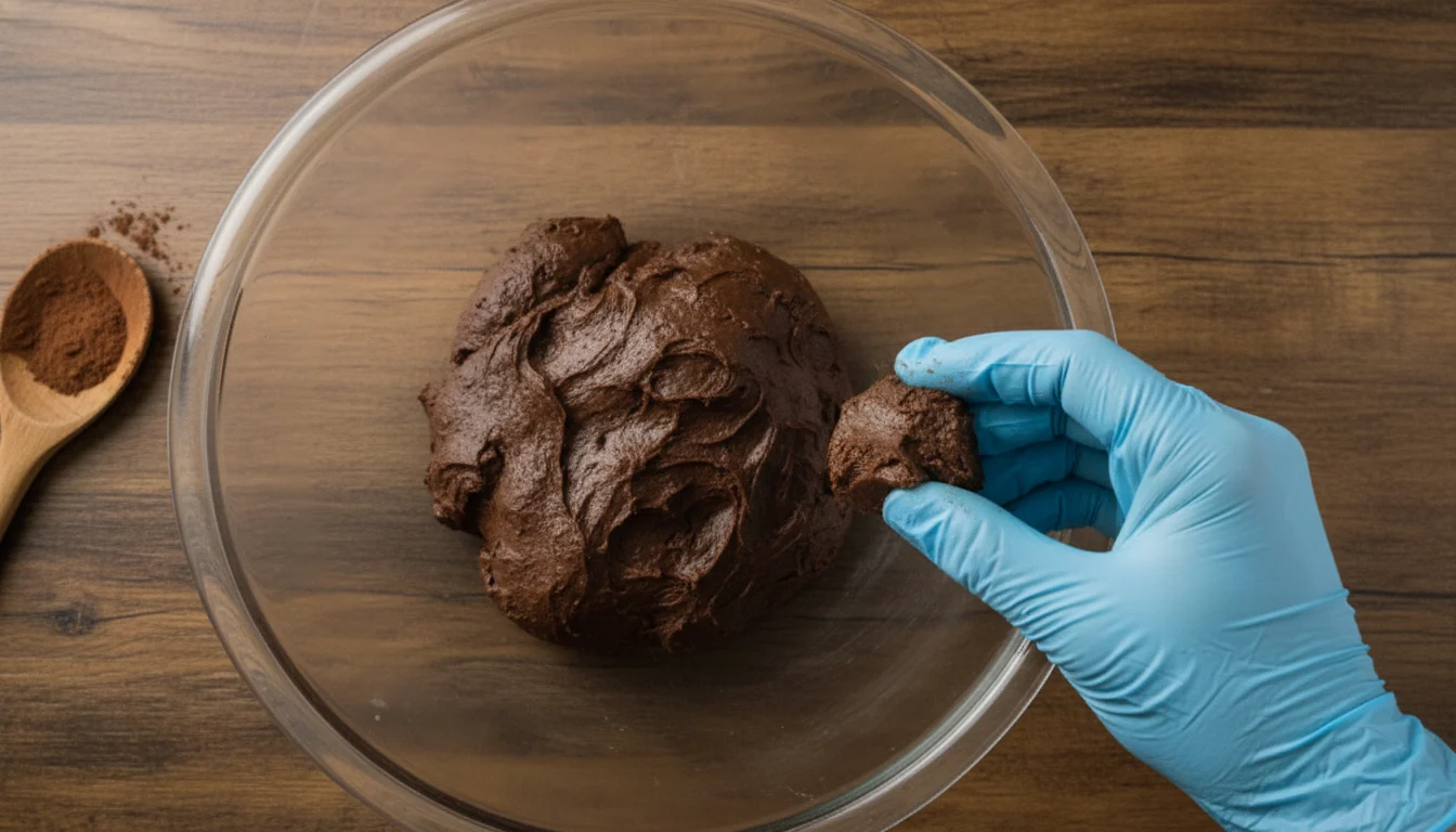 - Misture novamente com a espátula e, assim que a massa estiver mais firme, use as mãos para amassar até obter uma massa úmida, consistente e que não grude nas mãos.