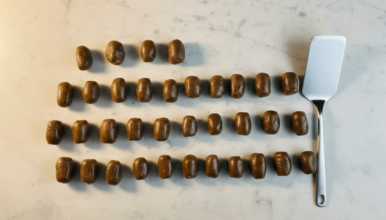 - Para moldar, pegue uma porção de cerca de 10 gramas de massa e forme uma bolinha em formato oval.