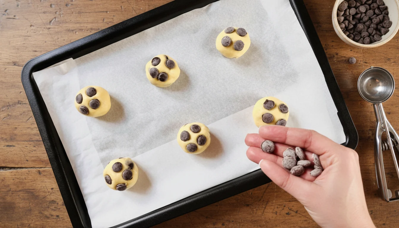 - Distribua as bolinhas com espaço adequado entre elas na assadeira.