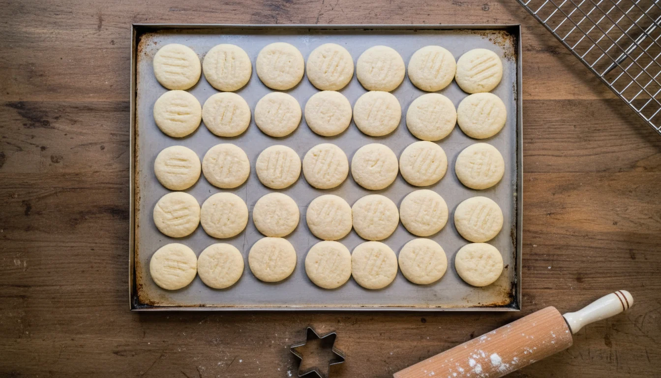 - Utilize um garfo para pressionar levemente os biscoitos, criando pequenas marcas na superfície da massa.