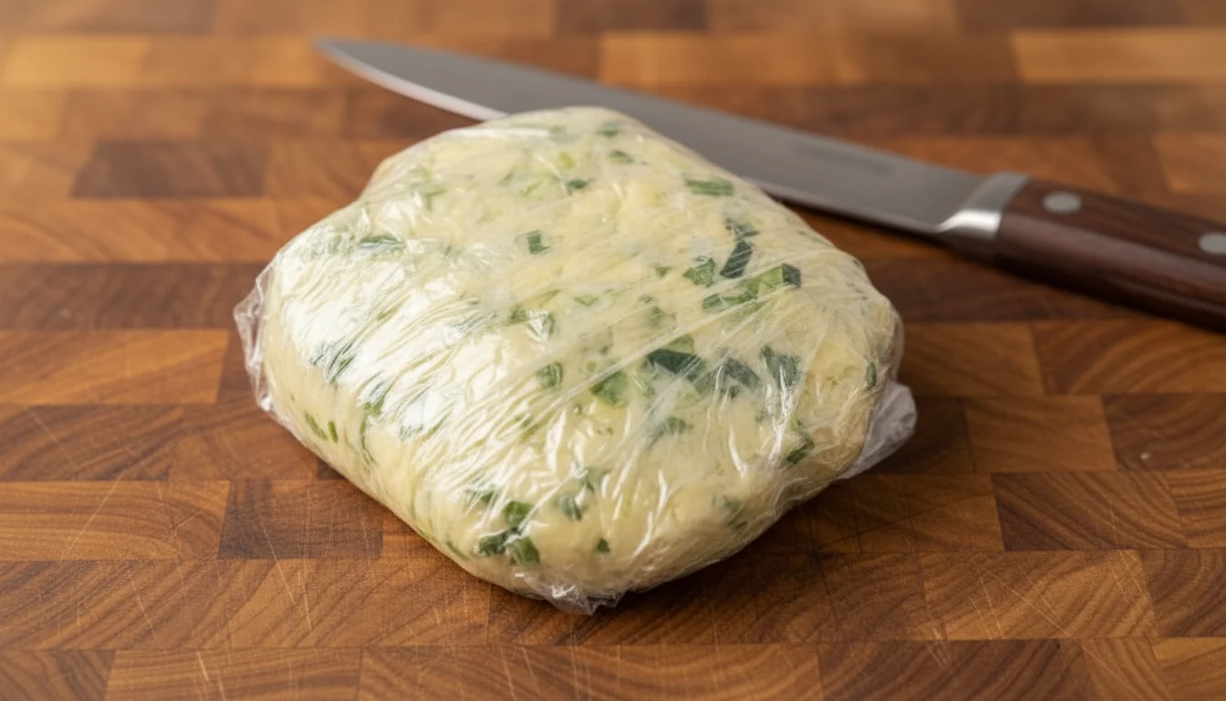 - Cubra a massa com plástico filme e coloque na geladeira por 30 minutos para firmar.
