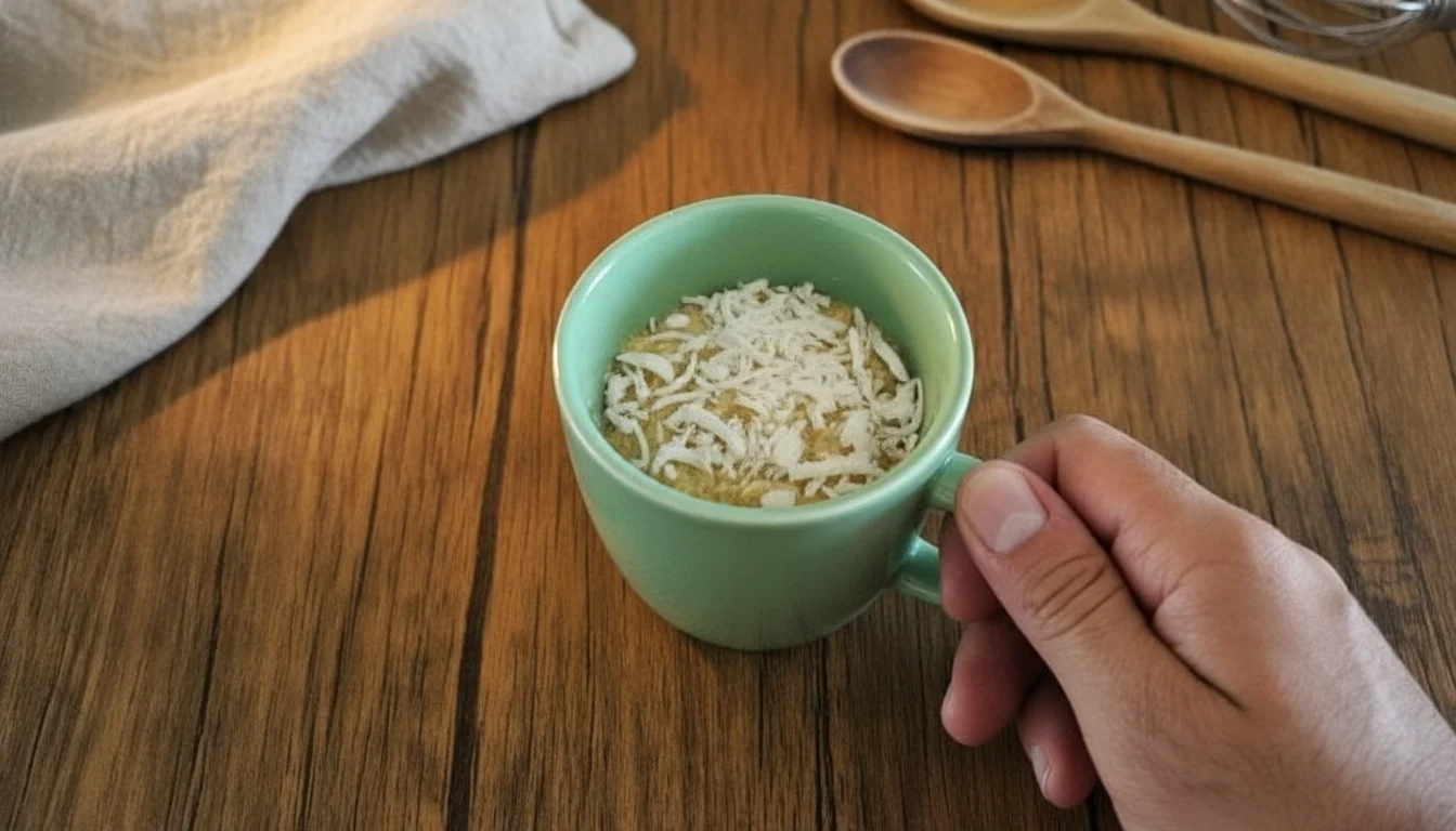 Bolo de caneca com coco saudável: a sobremesa rápida que não pesa na consciência