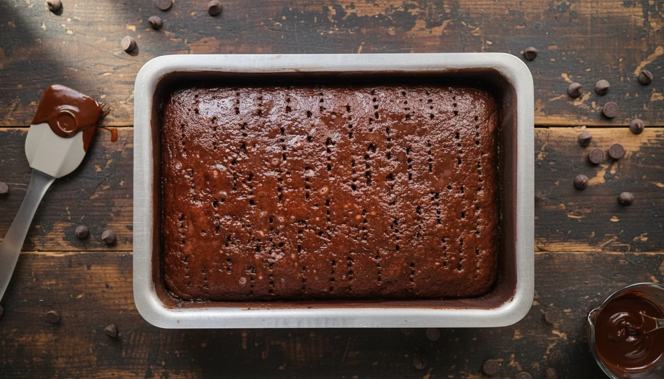 Esta receita pode se tornar um dos seus favoritos! O bolo apresenta uma massa macia, uma calda que proporciona umidade e uma cobertura que impressiona pela crocância e sabor marcante. Para um toque especial, adicione a calda morna ao bolo. Você também pode incluir uma pitada de noz-moscada na massa para intensificar o sabor do chocolate. É uma ótima opção para uma sobremesa no domingo ou um lanche especial.