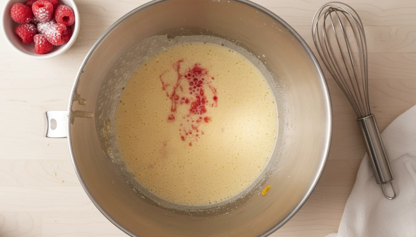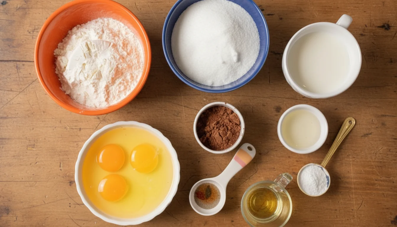 - Em uma tigela, misture o leite, o óleo, o vinagre, o chocolate em pó, o corante e a essência de baunilha. Misture bem até ficar homogêneo. Incorpore essa mistura na batedeira com os ovos e açúcar. Bata em baixa velocidade para integrar.