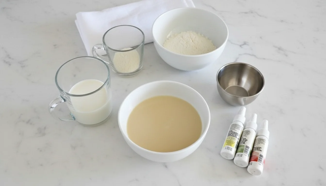 1. Junte todos os ingredientes necessários para preparar brigadeiros coloridos com corante, ideais para festas e vendas.