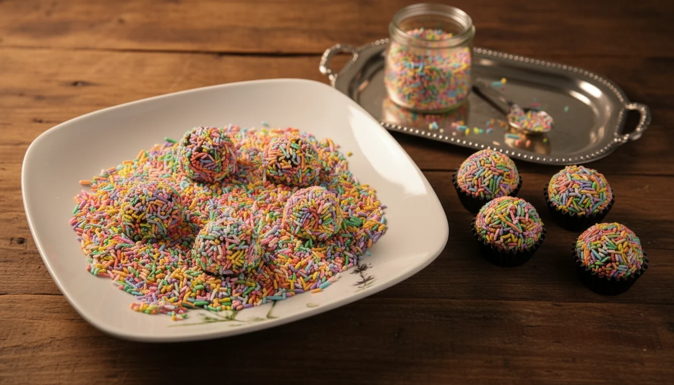 Brigadeiro com granulado colorido: uma explosão de sabor em cada mordida!