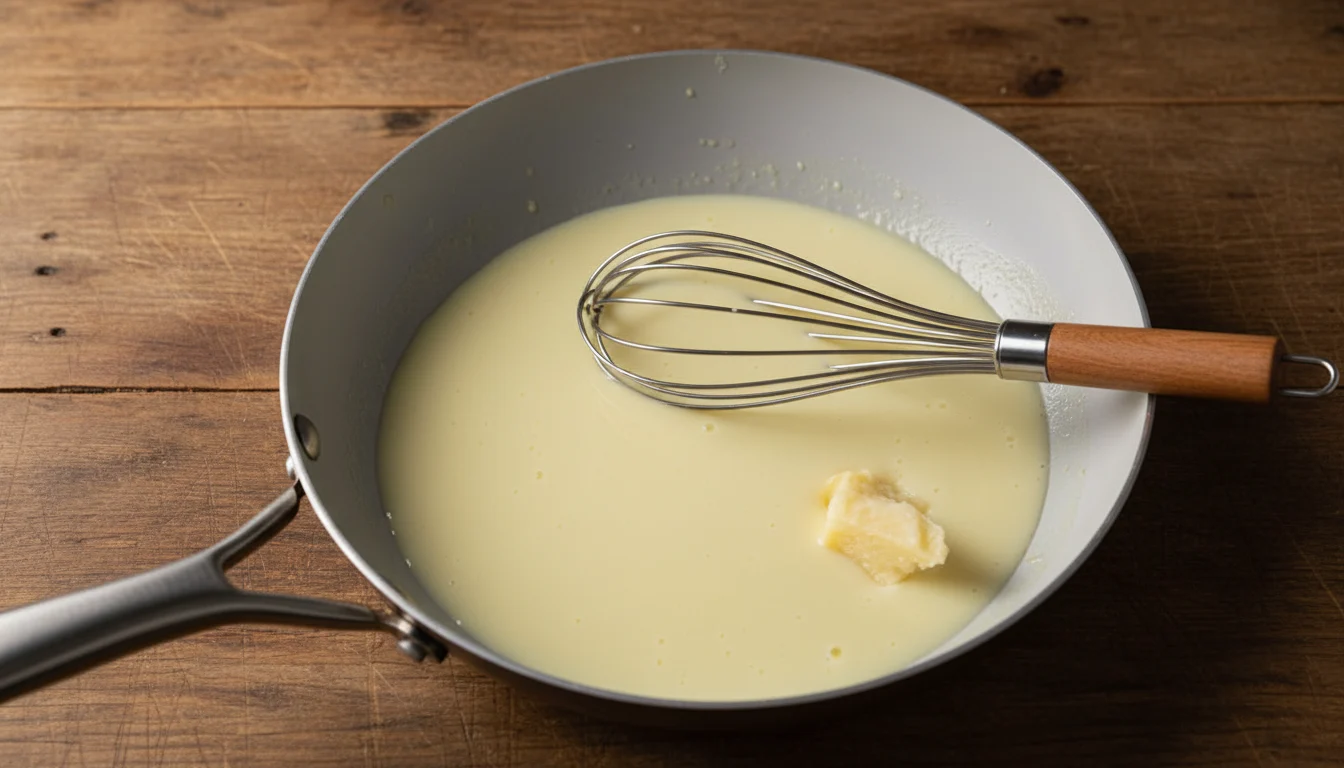 - Em uma panela de fundo espesso, adicione o leite condensado, a manteiga e uma pitada de sal. Aqueça em fogo baixo, mexendo sempre até que a manteiga esteja completamente derretida.