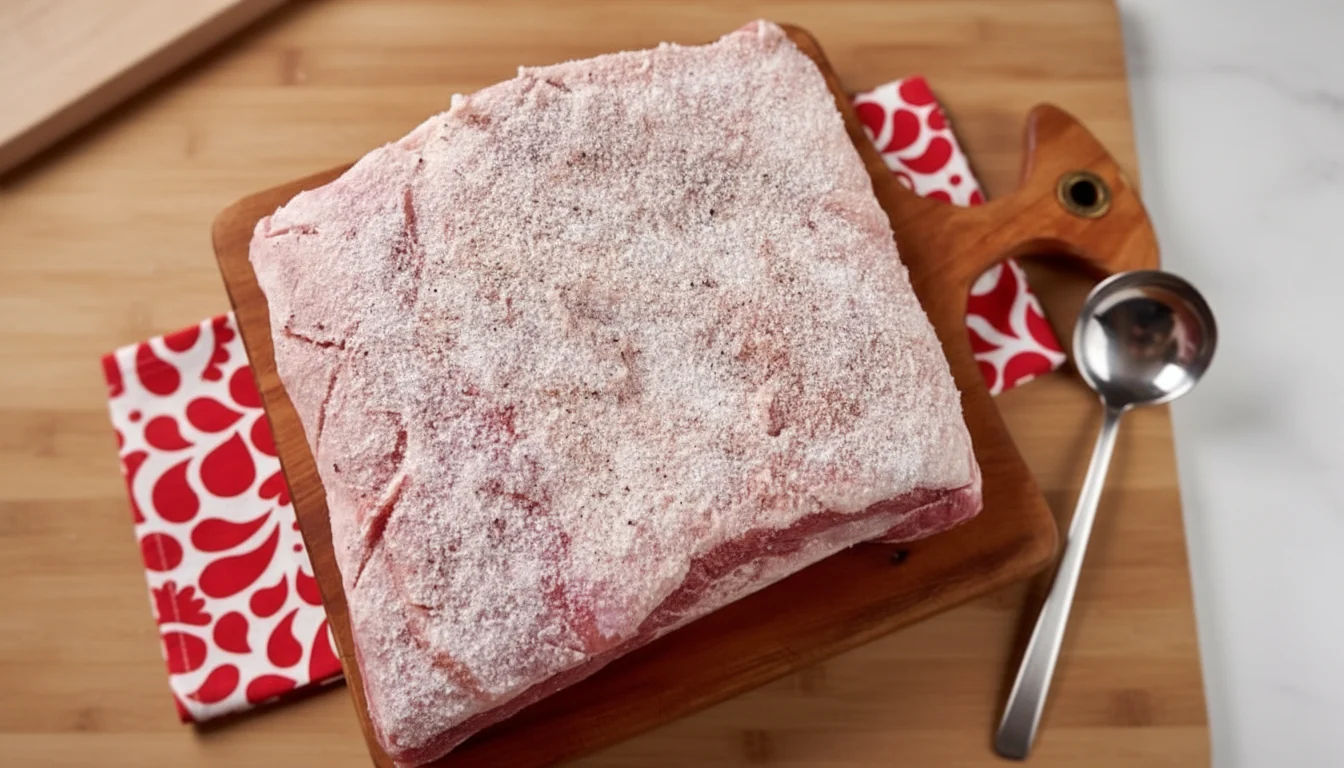 3. Tempere a carne com o sal grosso e a pimenta, garantindo uma boa distribuição.