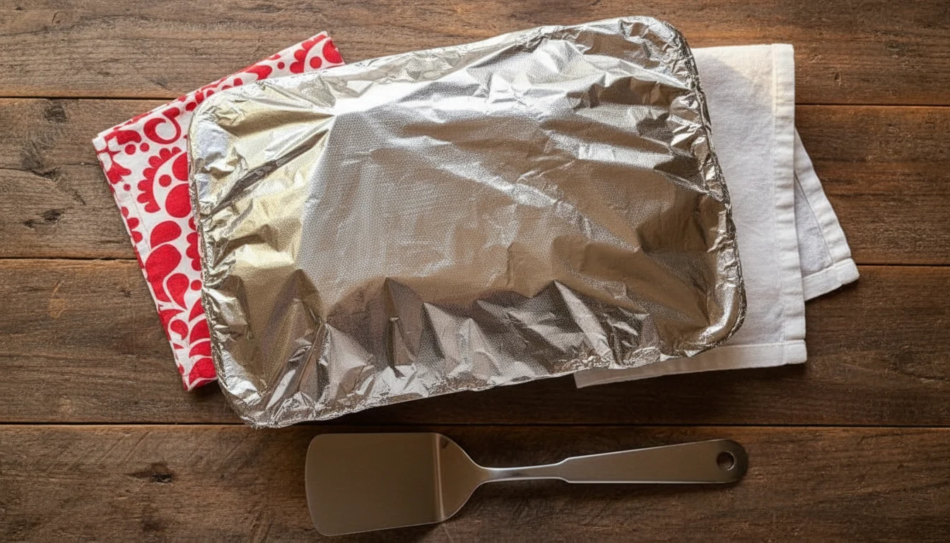 6. Cubra a assadeira completamente com papel alumínio (certifique-se de que não haja aberturas) e leve ao forno (a gás) pré-aquecido a 240ºC por aproximadamente 3 horas e 30 minutos.