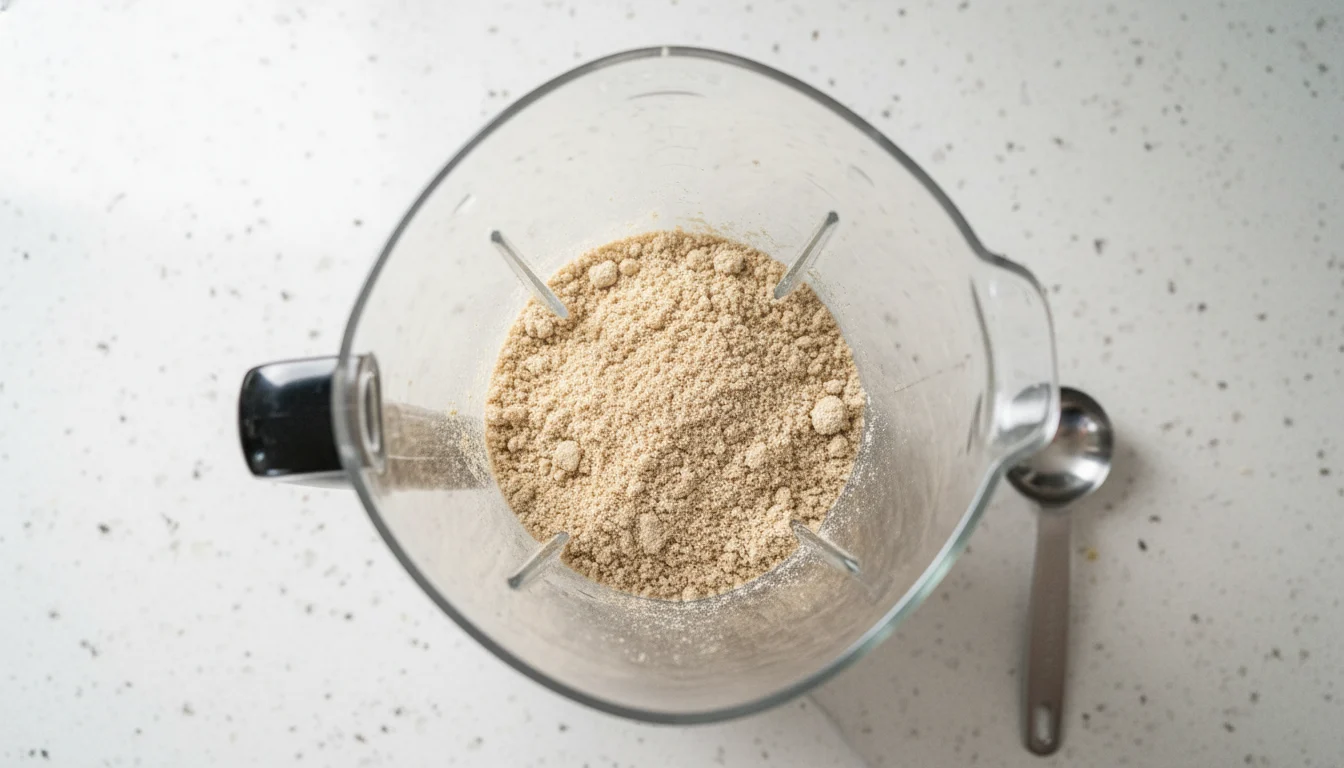 - Coloque o amendoim no liquidificador e processe até obter uma consistência de farinha.