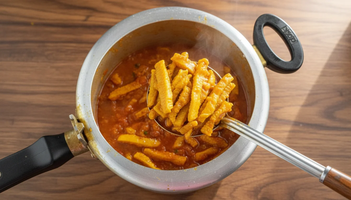 - Feche a panela e, após pegar pressão, cozinhe por cerca de 30 minutos. Em seguida, desligue o fogo e deixe a pressão sair naturalmente. Abra a panela e verifique a maciez do bucho.