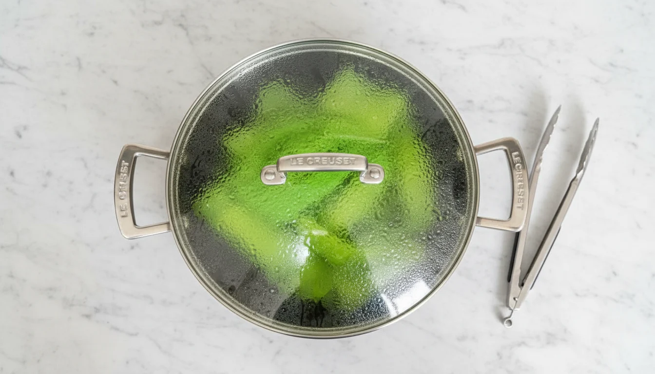 - Retire a tampa da panela, misture novamente e refogue por mais 2 minutos ou até que fiquem no ponto desejado - as ervilhas devem cozinhar levemente, mantendo-se crocantes e com uma cor verde vibrante. Prove e ajuste o sal se necessário.
