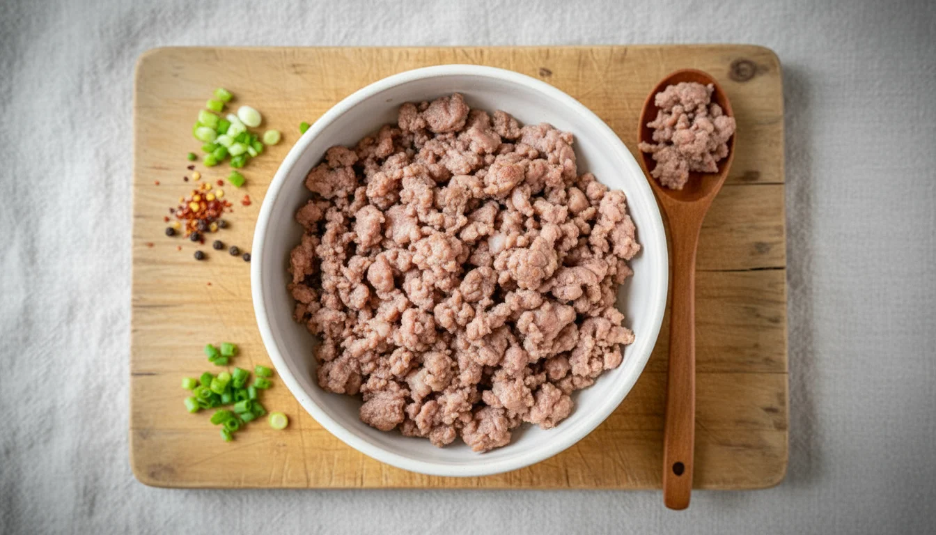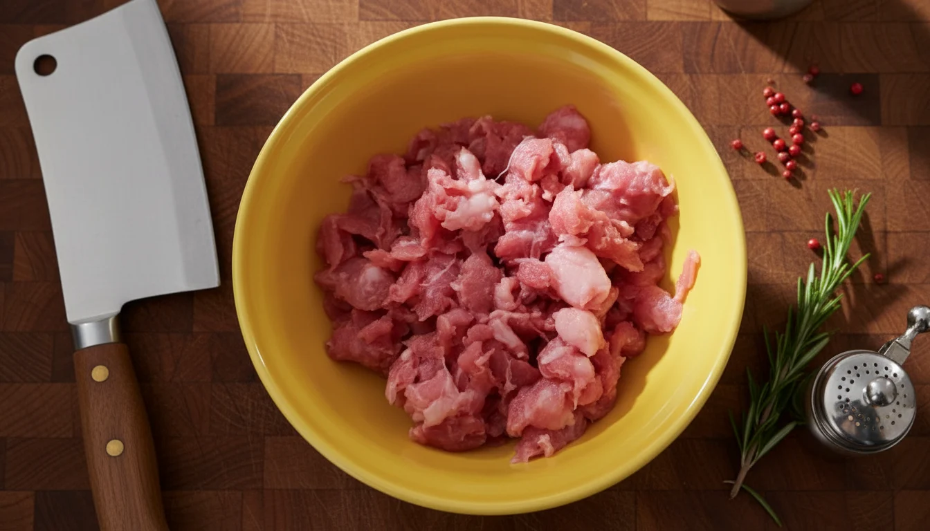- Remova a pele das linguiças e corte-as em pedaços pequenos, como se fossem carne moída