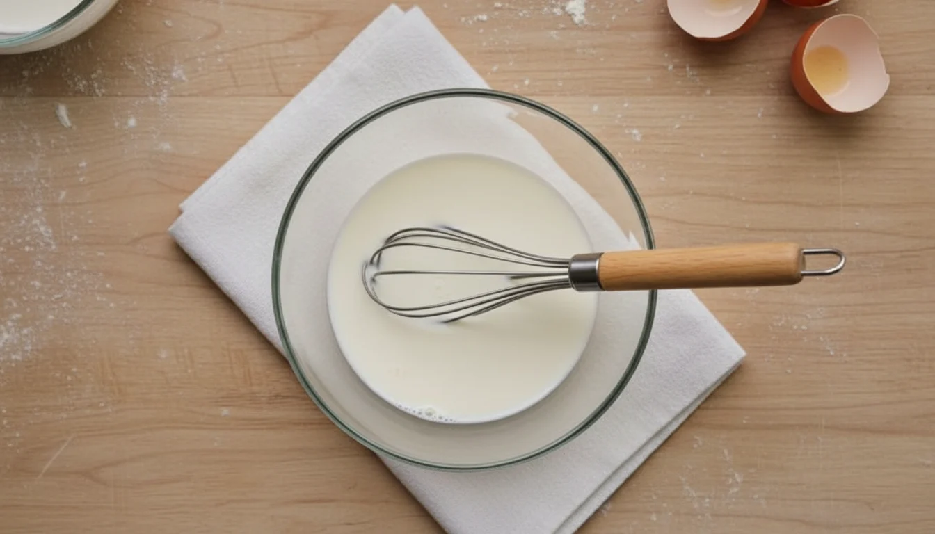 - Para fazer o creme, comece dissolvendo o amido de milho em uma pequena tigela com um pouco do leite;