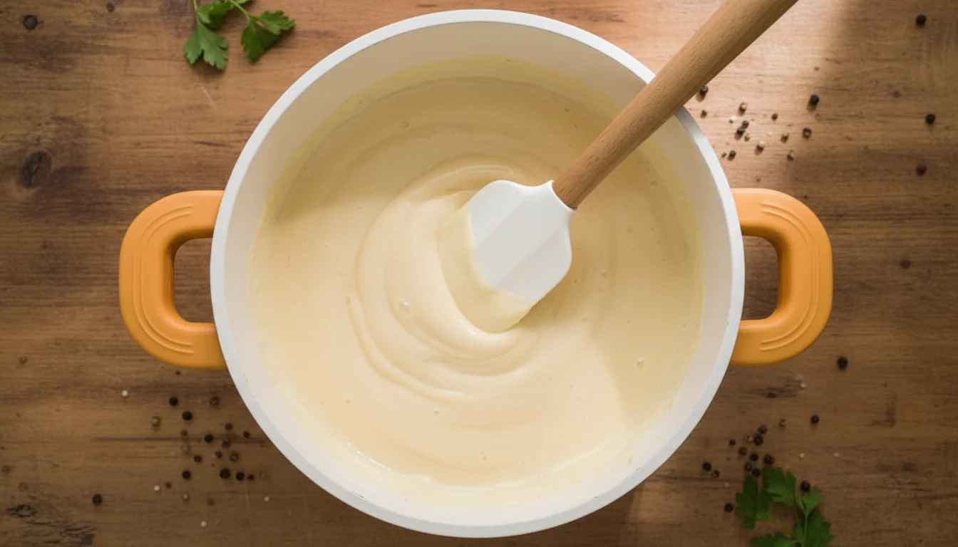 - Em uma panela, coloque as gemas, adicione o leite condensado e o restante do leite. Cozinhe em fogo médio, mexendo constantemente. Quando começar a ferver, adicione lentamente o amido de milho dissolvido e mexa até engrossar. Reserve;