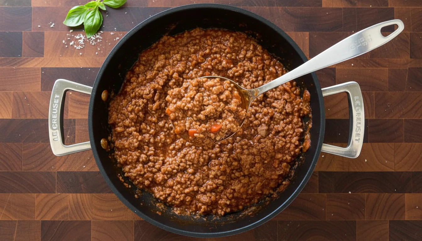 2. Assim que a carne estiver dourada, adicione o molho de tomate, o sal, o orégano e a pimenta-do-reino. Se desejar, inclua outros temperos a gosto, como manjericão, tomilho e páprica picante.