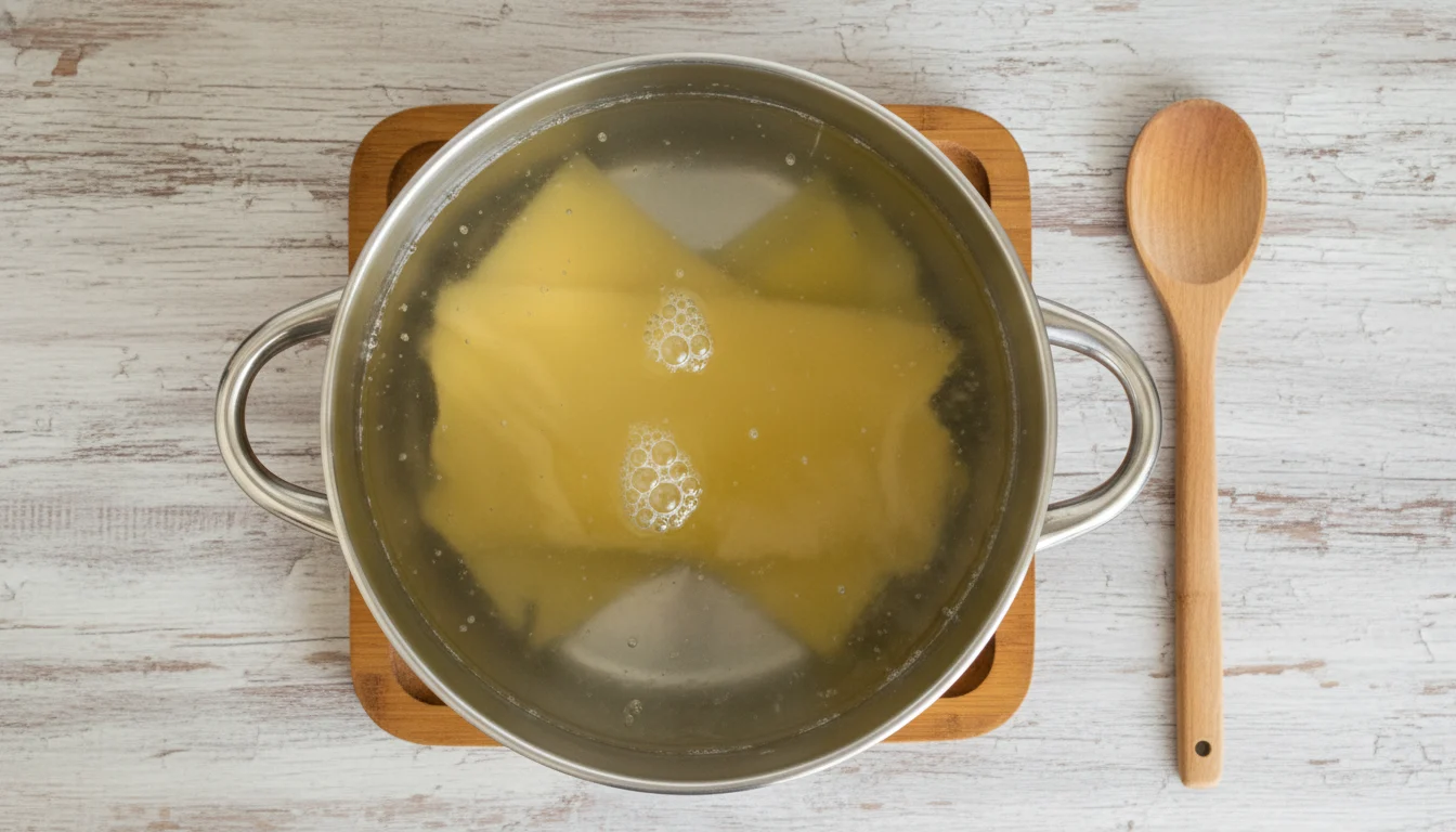 3. Em outra panela, ferva água e cozinhe a massa de lasanha conforme as instruções que acompanham a embalagem.