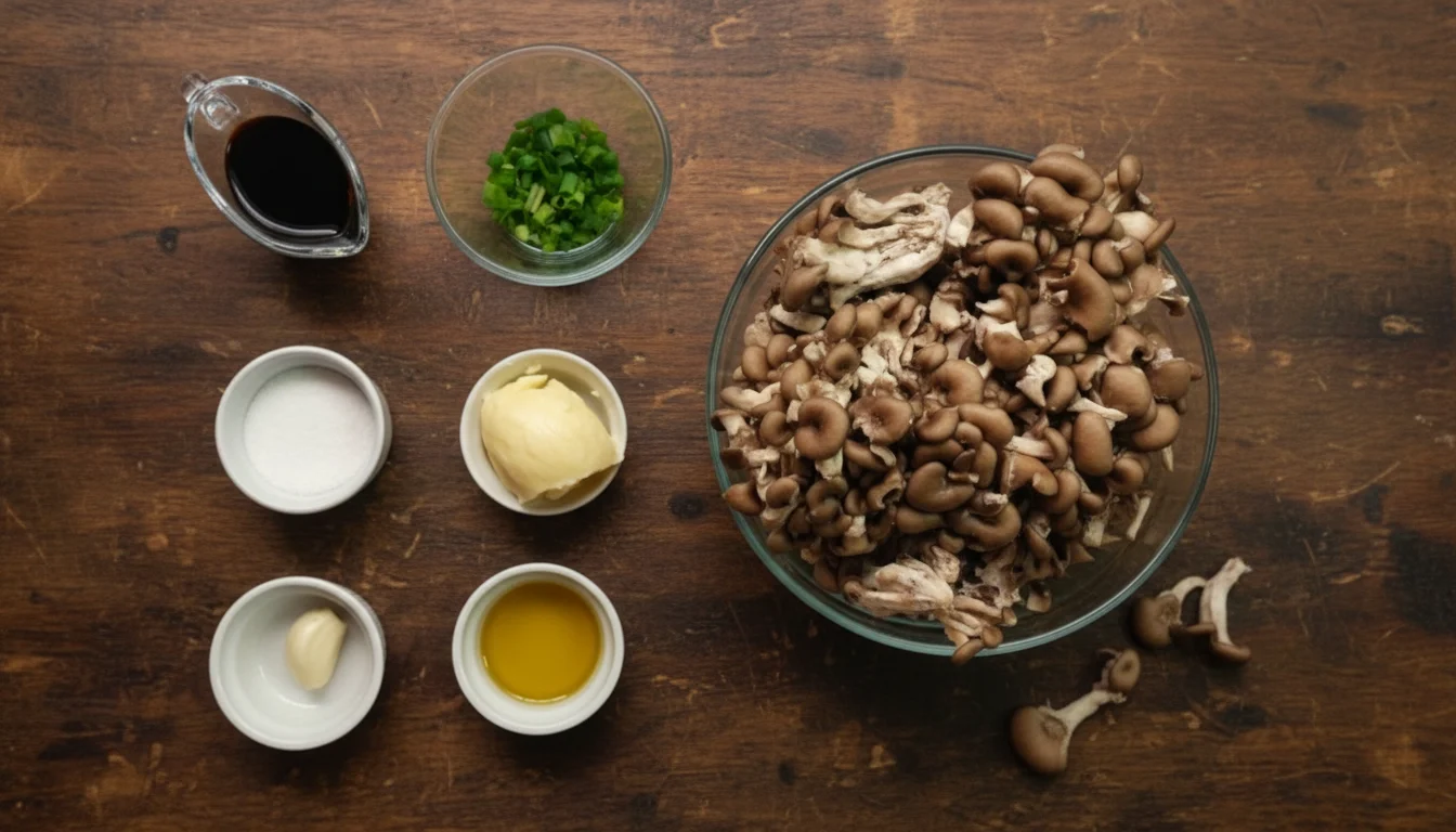 - Organize os ingredientes necessários para preparar o shimeji na manteiga com shoyu!