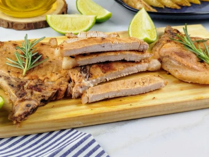 As bistecas feitas na Air Fryer que você acabou de conhecer, ficam douradas de maneira uniforme e não secam. Isso acontece porque, ao comprá-las, foram escolhidas peças com cerca de 2 centímetros de espessura, garantindo uma camada fina de gordura que mantém a carne úmida. E falando em umidade, outro ponto crucial para manter a suculência é a marinada. Por isso, é essencial que antes de assar, as bistecas permaneçam marinando pelo menos os 15 minutos indicados. Lembre-se, quanto mais tempo, melhor! Para intensificar o sabor da carne, você pode adicionar alho amassado e ervas frescas, como alecrim e tomilho, para realçar também o aroma. E uma pitada de pimenta-do-reino nunca faz mal.