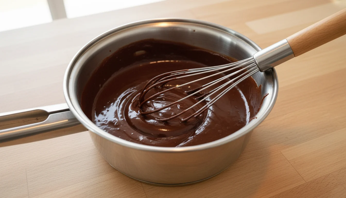 - Desligue o fogo e, utilizando um fouet, mexa bem para eliminar os grumos;