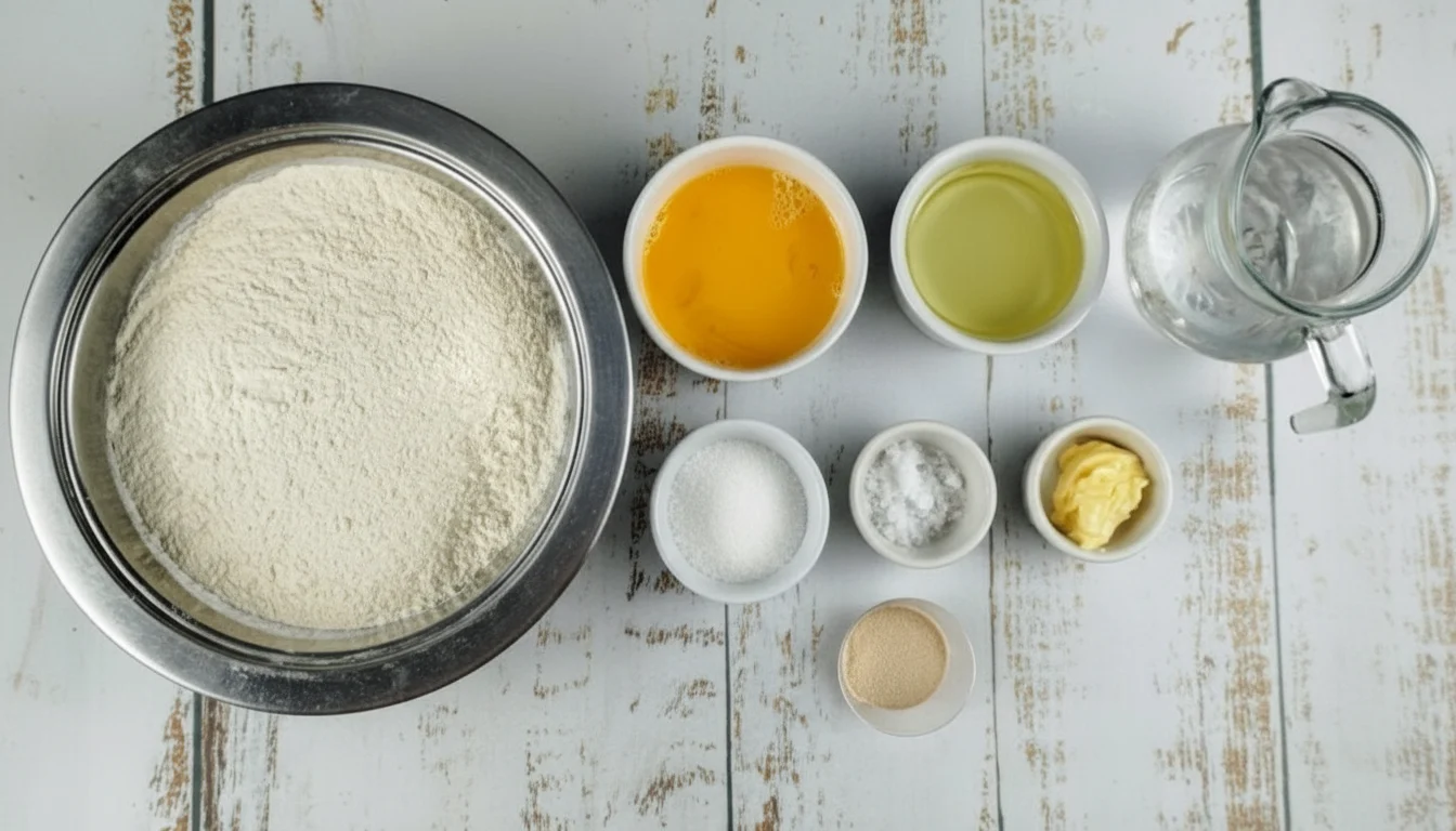 - Prepare os ingredientes sobre a bancada. Quebre os ovos individualmente para checar a qualidade. Peneire a farinha de trigo usando uma peneira. Unte a forma de pão com manteiga e polvilhe farinha de trigo.
