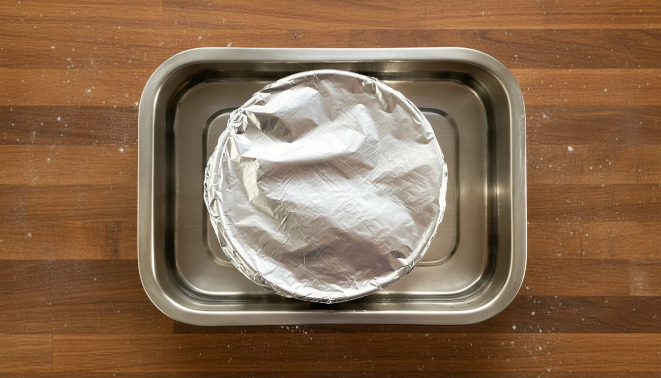 - Cubra a forma com papel-alumínio e leve ao forno pré-aquecido a 180ºC por cerca de 45 minutos em banho-maria. Coloque a forma de pudim dentro de uma assadeira retangular alta com água.
