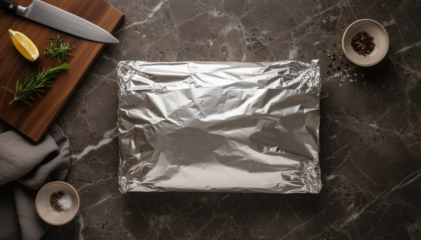 - Cubra a assadeira com papel alumínio, com o lado brilhante voltado para o alimento, e deixe na geladeira por pelo menos 2 horas.