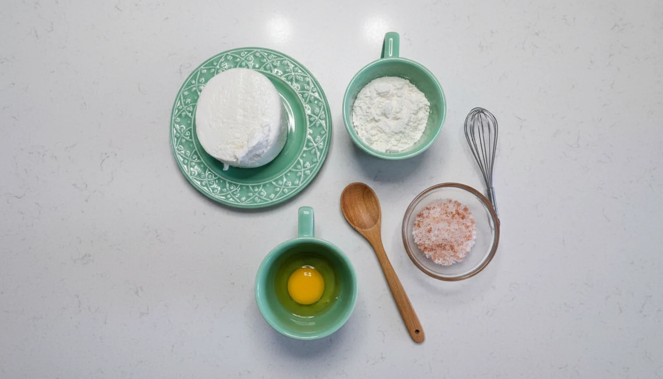 - Inicie o preparo, em um recipiente, coloque o ovo, a clara, a ricota, o sal, a farinha de arroz e misture até obter uma massa homogênea.
