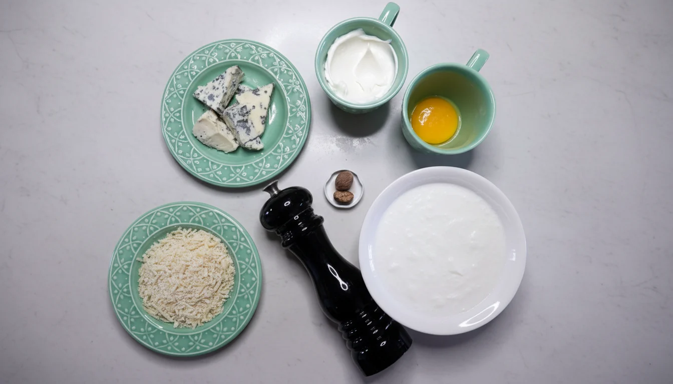 - Incorpore o creme de leite e tempere com pimenta e noz-moscada, misturando bem.