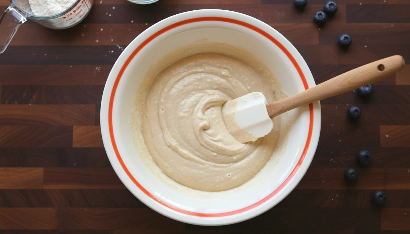 - Em seguida, despeje a mistura do liquidificador em uma tigela e, aos poucos, acrescente a farinha de trigo, o amido de milho e o fermento. Misture suavemente com um batedor de arame.
