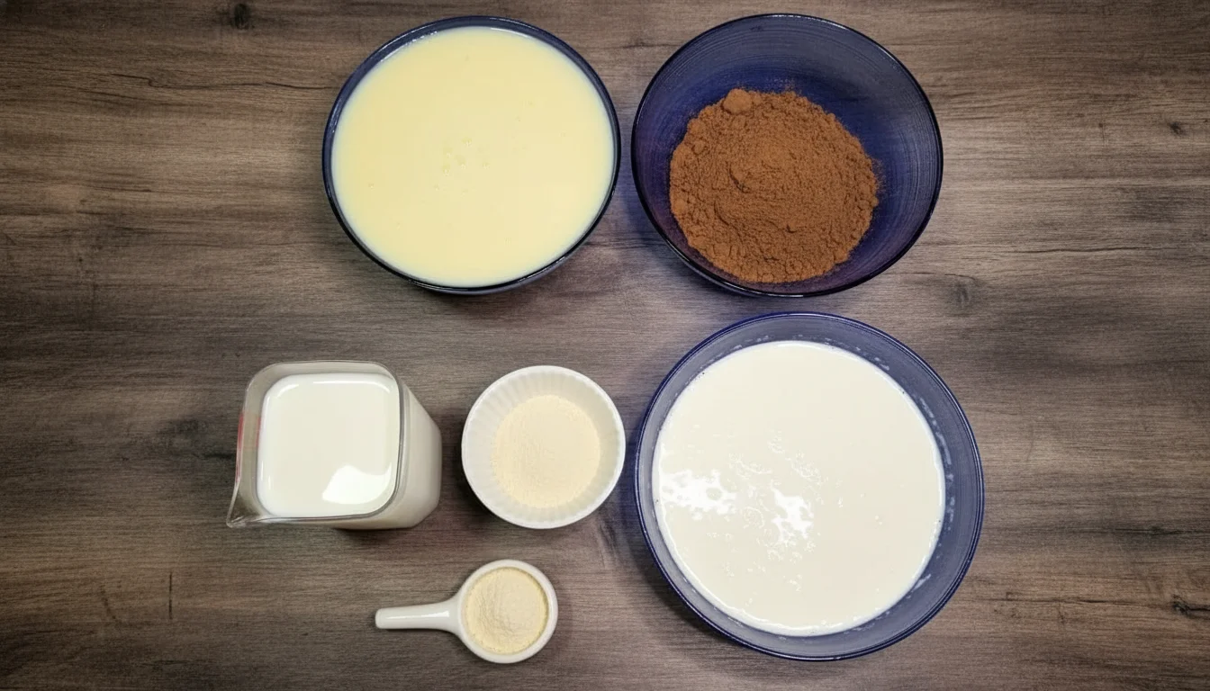 - Junte todos os ingredientes necessários para o pudim congelado de chocolate;