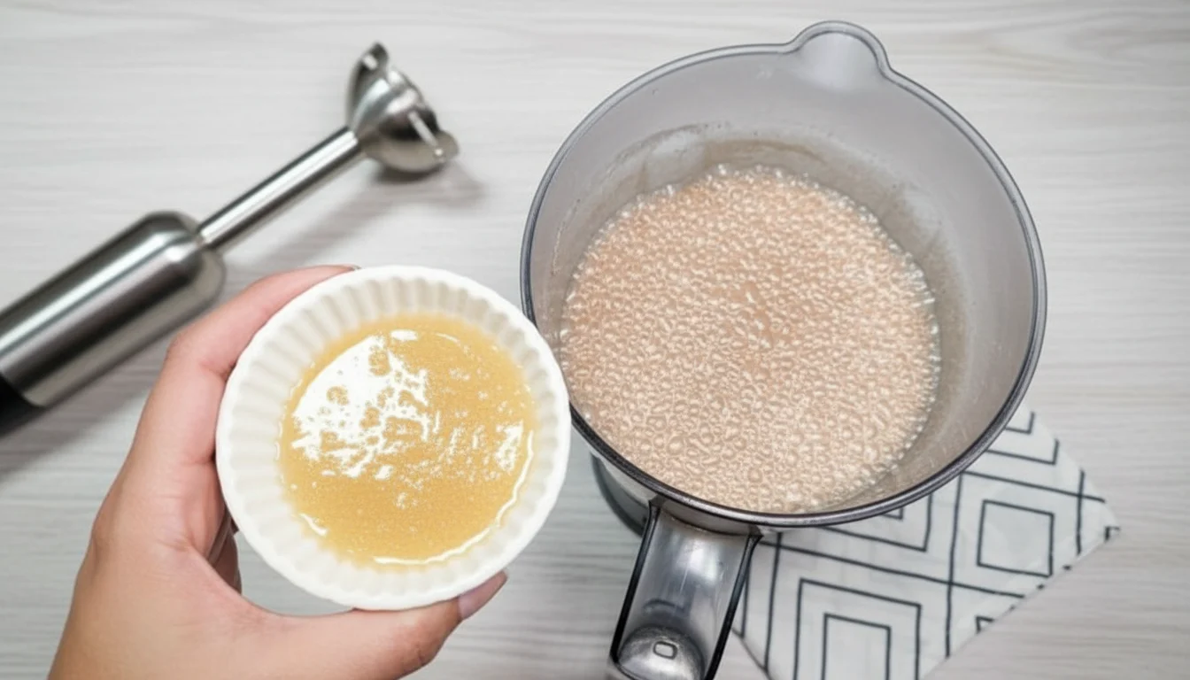 - Em seguida, incorpore a gelatina hidratada e misture por mais 3 minutos;