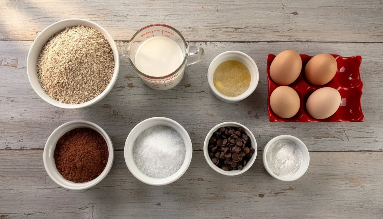- Separe todos os ingredientes necessários para fazer o bolo de chocolate sem açúcar;